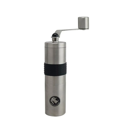 Grind coffee anywhere with the Rhinowares Hand Grinder, a powerful grinder that’s perfect for home and travel use. It’s built with food safe stainless steel that’s durable enough for any journey. The grinder is only 17cm tall and can fit into any bag or backpack. The grinder is hand-powered, and can be used in remote locations without electricity.